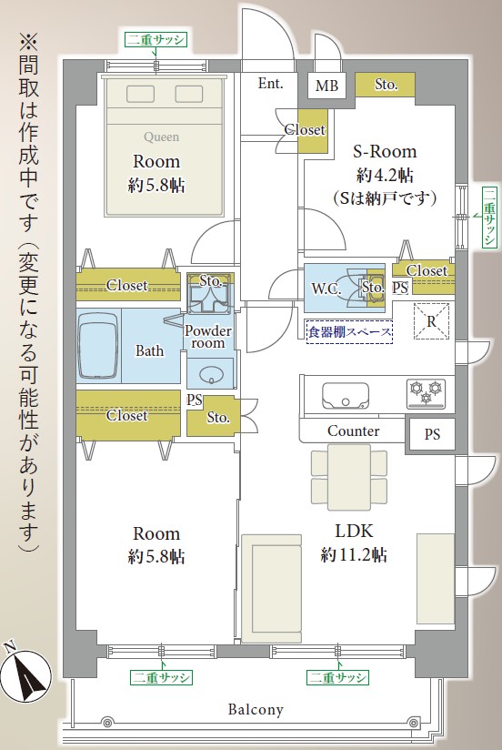 南向きの角住戸になりますので、日当たり、眺望、良好なお部屋となっております。