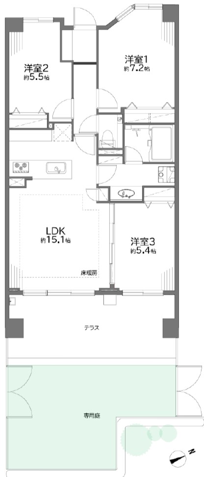 ペット飼育可能なマンションの上、専用庭付き住戸なので、ワンチャンも伸び伸び走り回れてストレスフリーですね。