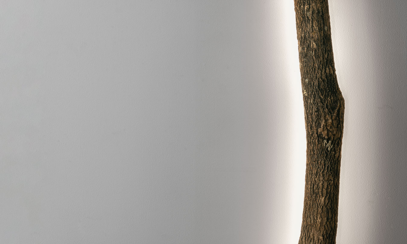 梢照明は、樹皮を残し、自然の表情を維持するために、独自の製法を用いて乾燥や加工を行っています。