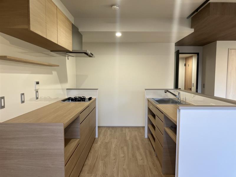 今回は二型かつ、家電スペースやダストスペースをキッチン内に設けて、最小限の動線で家事ができるようjな計画になっております。