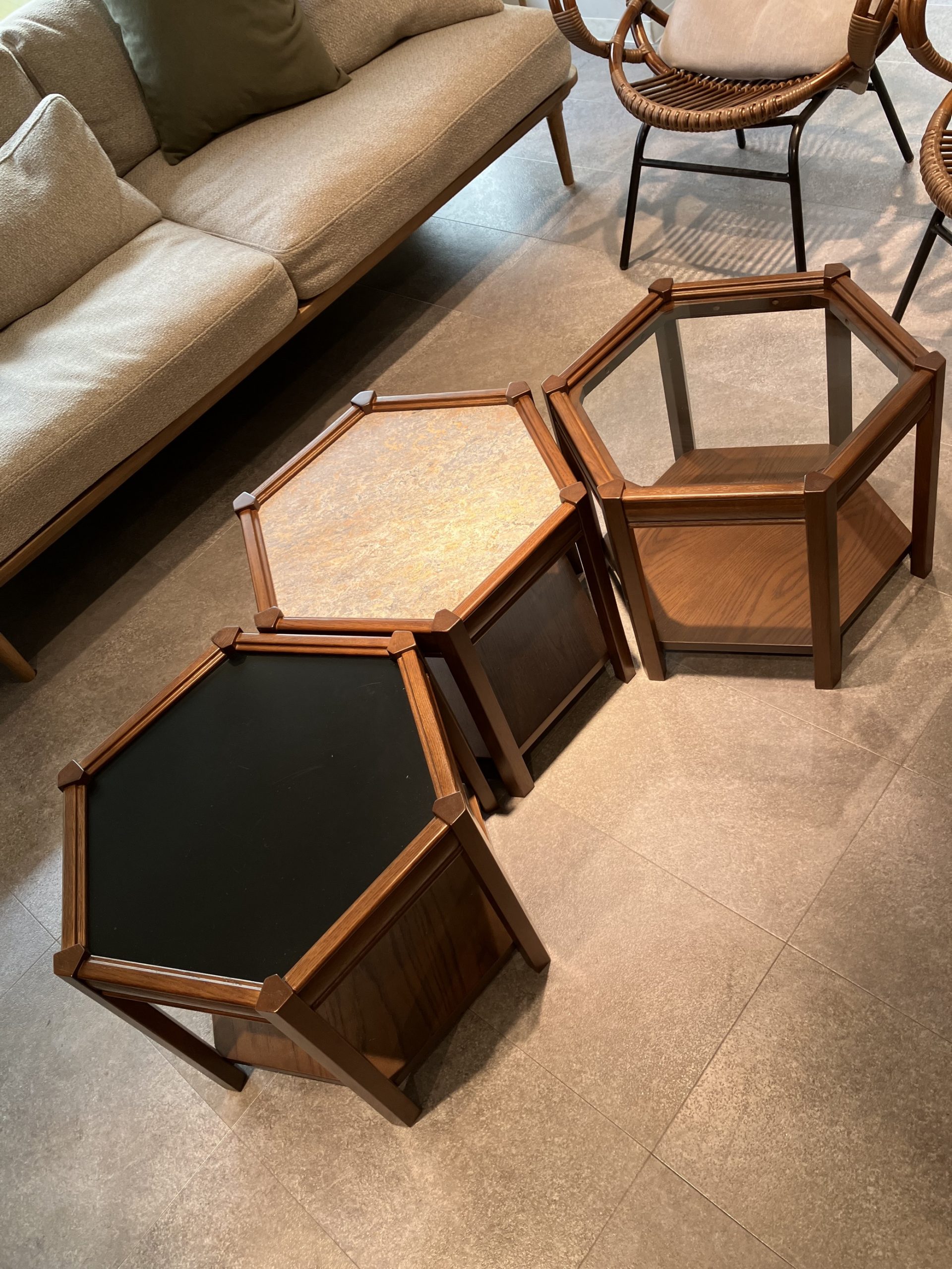 こちらのサイドテーブルは3つのテーブルを組み合わせたり、離して3つの小さなテーブルとして使うことができます!