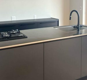 リノベーション工事でも採用例が増えてきていますが、改めて綺麗な天板です。国内メーカーのキッチンでも、各メーカー様々な特徴があるので、常に情報を更新しながら、ご希望に合致するキッチンをご提案できるように今後も頑張ります。