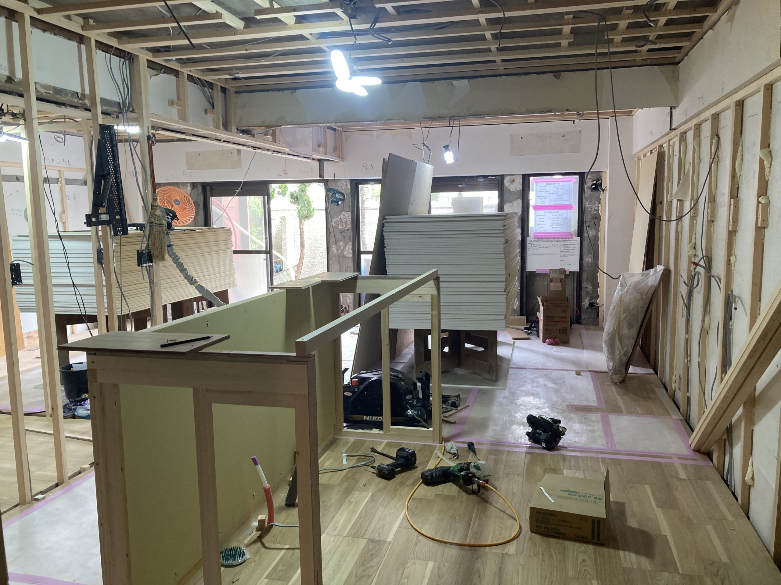 石膏ボードが貼られるといよいよ、部屋の形がより具体的に見えてきます。