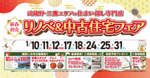 実は、「新春初売リノベ&中古住宅フェア」は今週末の17日(土)、18日(日)も開催します!住まい探しはもちろんのこと、リノベーションについてもご相談できます。プレゼントや抽選会など、楽しんでいただけるイベントもご準備していますので、少し話を聞いてみたいなぁ、と思われた方は、ぜひご来場ください。お待ちしております!