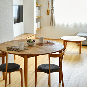 丸テーブルを囲めば、会話が自然と弾みます。