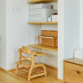 棚板の位置を変えられるので、お子様の成長に合わせてフレキシブルに。