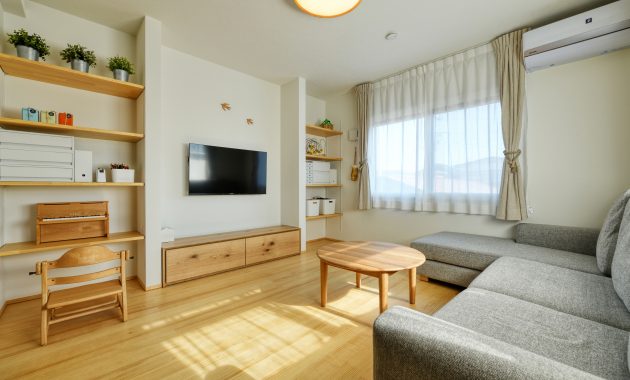 リビングには壁面収納もあり、いつでもスッキリした空間に。