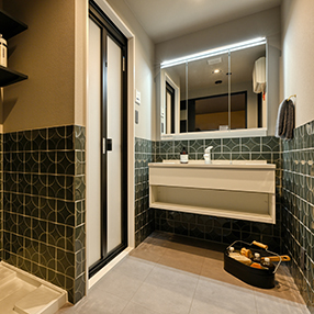 「落ち着いた雰囲気で、自分たちのスタイルを表現したい」というご夫婦の希望をもとに、INDUSTRIAL×VILLAテイストのデザインに。古材やアイアン素材を取り入れながら、真鍮やタイルなど上質な素材を組み合わせ、無骨さの中に品のあるモダンな空間を目指しました。家族が安心して過ごせる空間づくりと、美しく機能的なデザインを両立した住まいとなりました。
