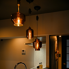 温かなデザインのペンダントライトが、キッチンを彩ります。