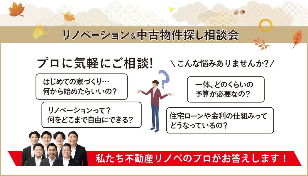 365リノベでは、中古住宅物件探しからリノベーションの提案、インテリアの相談まで承っております。